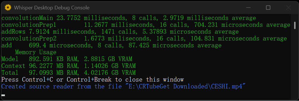 我在搭载 RTX 4090 的电脑上实测,8 分钟的视频仅需约60 秒即可识别完成,速度非常快,几乎可视为实时级别的本地转录性能。